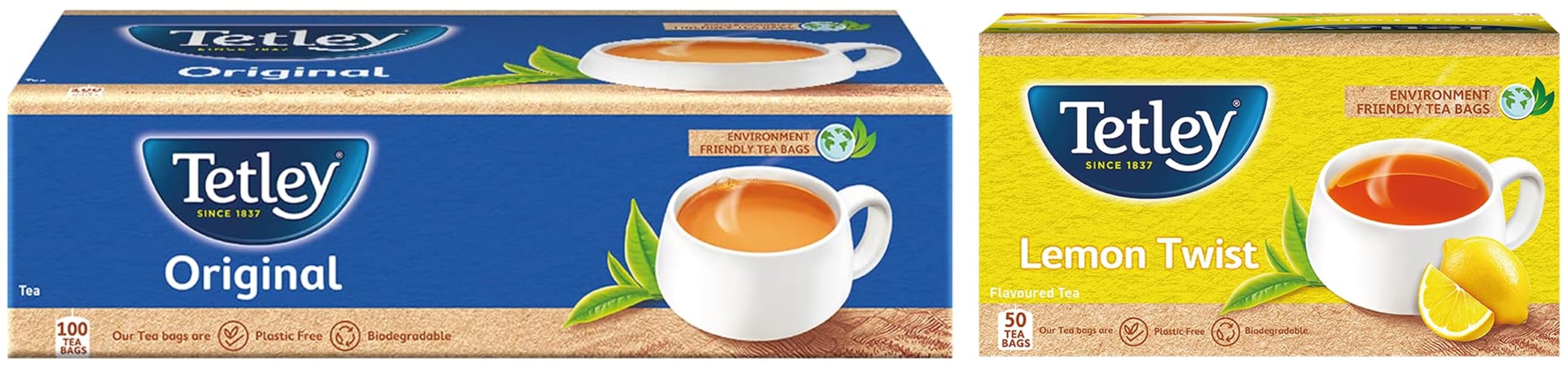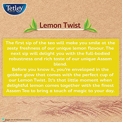 Tetley | Lemon Flavoured Refreshing Tea | Black Tea | 50 Tea BagsNow refresh rejuvenate and relax with Tetley. Introducing Tetley Lemon Twist Tea which indulges you in the refreshing flavour of lemon. The first sip will make you smile at the zesty freshness of our unique lemon flavour. The next sip will delight you with the full-bodied robustness and rich taste of our unique Assam blend. Before you know it youâre enveloped in the golden glow that comes with the perfect cup of our Lemon Twist. Itâs that little moment when delightful lemon comes together with the finest Assam Tea to bring a touch of magic to your day. Tetley is available in a variety of black tea flavours including Tetley Original Masala Chai Elaichi Ginger Zing Darjeeling and English Breakfast.Tetley | Original | Rich Taste of Assam Tea |100 Tea Bags | 1.7g EachPour freshly boiled water into a cup. Place one teabag and let it brew for 1-2 mins. Remove the teabag. Have as black tea or add milk and sweeten with sugar as desired.