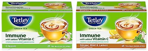 Tetley Green Tea, Ginger Mint Lemon, 25 Tea Bags and Tetley Green Tea, Pure Original, 25 Tea Bags
