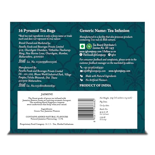 TGL Jasmine Tea Bags, 16 Tea Bags with Green Tea & Jasmine Blossom Petals, Green Tea Bags for Sliming