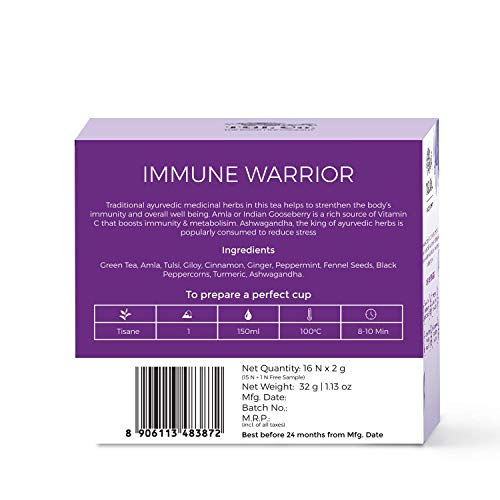 Immunity is the key to good health! Traditional ayurvedic medicinal herbs in this tea helps to strengthen the body's immunity and overall well-being. Amla or Indian Gooseberry is a rich source of Vitamin C that boosts immunity & metabolism. Ashwagandha the king of ayurvedic herbs is popularly consumed to reduce stress. Tulsi Ginger Turmeric and other ingredients rich in antioxidants collectively help to elevate the body's defense mechanism against diseases.