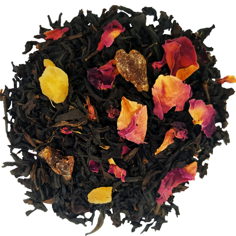 Aroma - A medley of fruity, floral and sweet fragrances compete to captivate all your senses.Appearance - AmberTasting Notes -   Fruity, Sweet, Floral Caffeine - High Best Consumed - AfternoonComplementing Food - Light food, Sandwiches, High tea, Fruit cakeTaste - If you're not already enticed with the discerning aroma of this blend, take the first sip, and you will find yourself swooped over by the fruity overtones of mango and apricots. The fruity notes balance just perfect with the tartness of black tea and floral undertones of rose petals, all these combined, leaving a sweet delightful aftertaste.