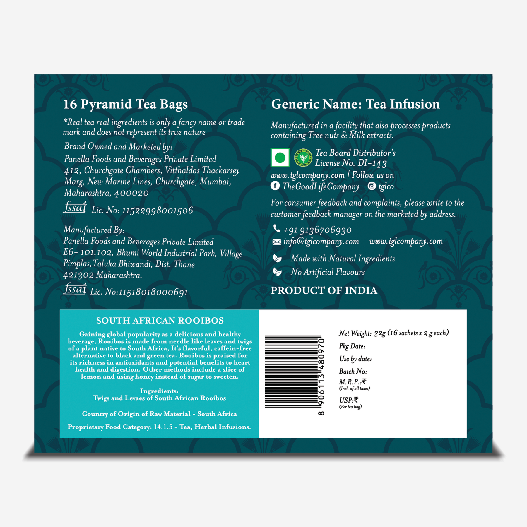 Gaining global popularity as a delicious and healthy beverage, Rooibos is made from needle like leaves and twigs of a plant native to South Africa. It's a flavorful, caffeine-free alternative to black and green tea. Rooibos is praised for it's richness in antioxidants and potential benefits to health and digestion. It is also known as Bush Tea, red tea or redbush tea and is commonly prepared in the same manner as black tea, and milk and sugar are added to taste. Other methods include a slice of lemon and using honey instead of sugar to sweeten.Shelf Life: 24 Months