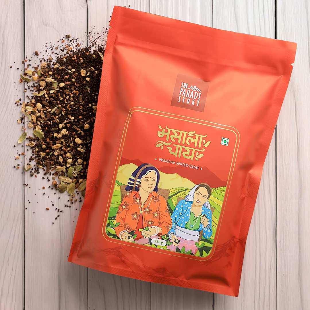 The Pahadi Story Tea-Masala Chai Patti 450 Grams Premium Masala Tea-Made With 100% Natural Ingredients|Best In Aroma & Taste|Experience The Authentic Flavor Assam
