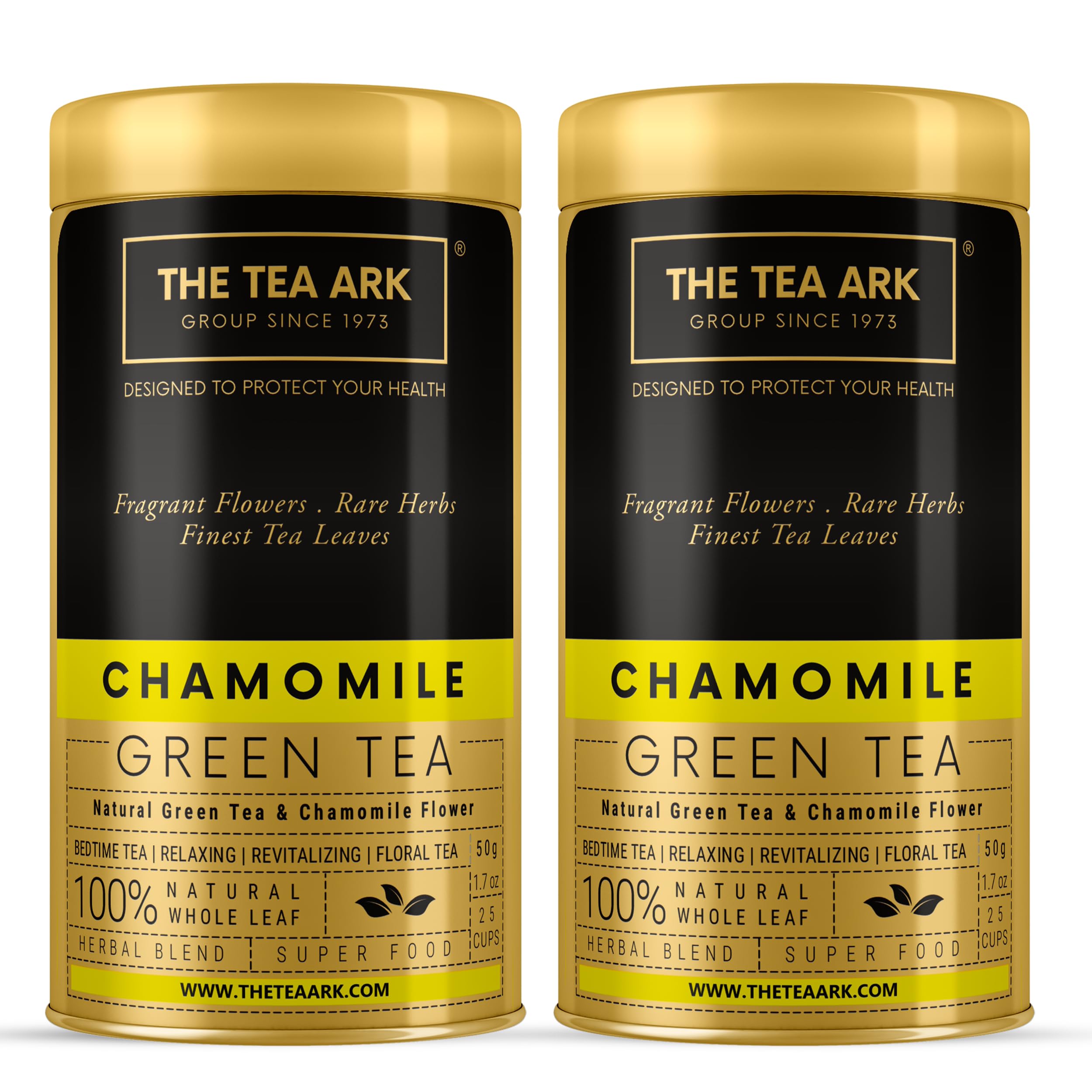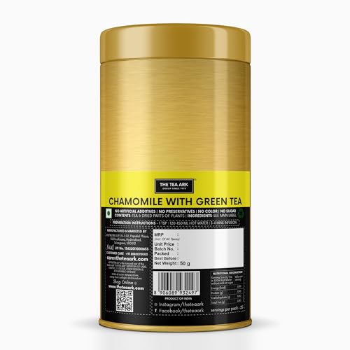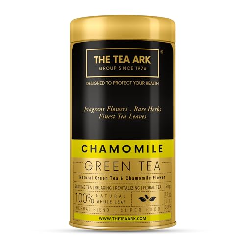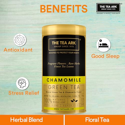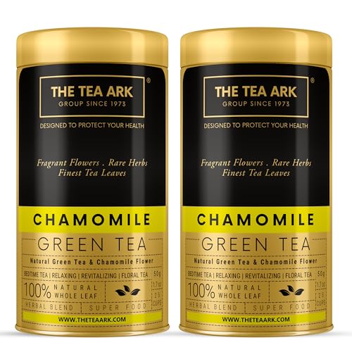 The Tea Ark Chamomile Green TeaStress Relief & Good Sleep Daily Detox Antioxidant Bedtime Tea (Loose Leaves 50g Tin (Pack of 2))