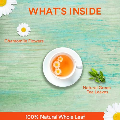 Chamomile tea is made of dried flowers consumed for various health benefits and is blended along with green tea to help in stress management and good sleep.