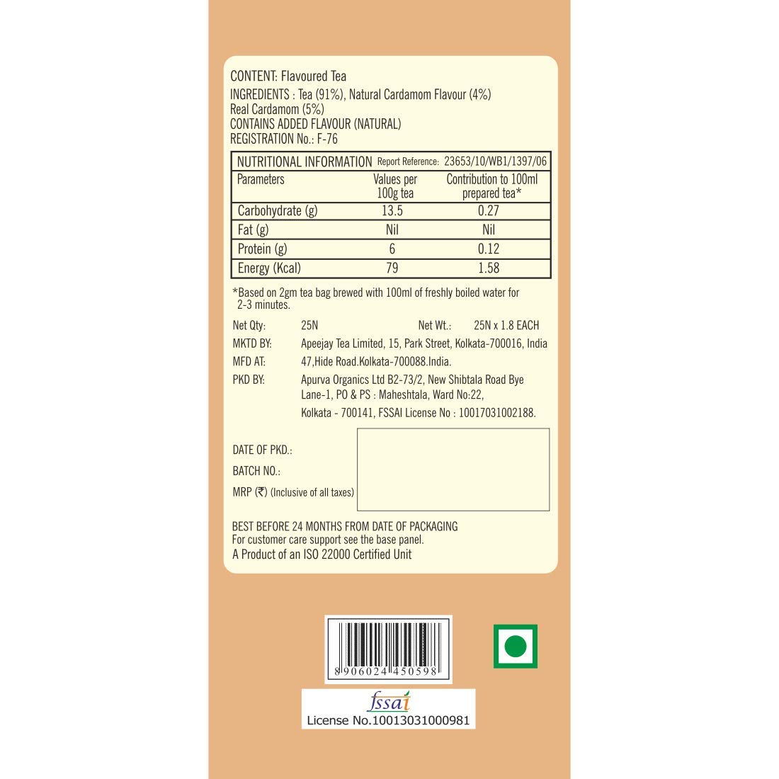 INGREDIENTS: Enjoy your brew enriched with Assam tea and cardamom.