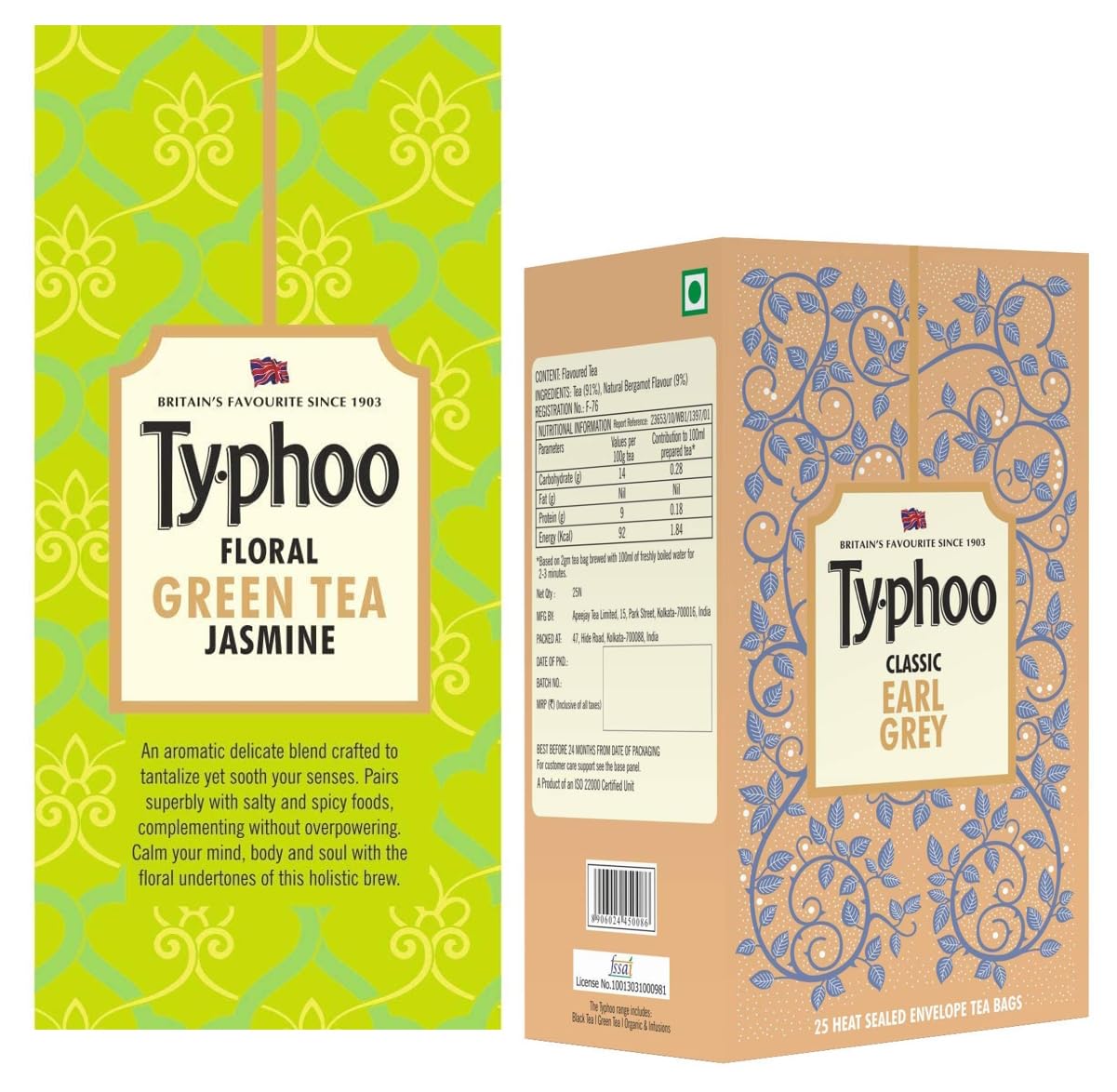 Typhoo Floral Jasmine Green Tea Bags (25 Tea Bags)The delicious and breezy green tea jasmine is perfect for relaxing your moments. Take a sip and let the floral taste serenade your taste buds with its freshness. Available in pack sizes of 25 tea bags.Typhoo Luxurious Flavoured Earl Grey Tea Bags (25 Tea Bags)The perfect drink to refresh your day. Enjoy the gentle flavors of bergamot in your daily brew. Best enjoyed without milk.