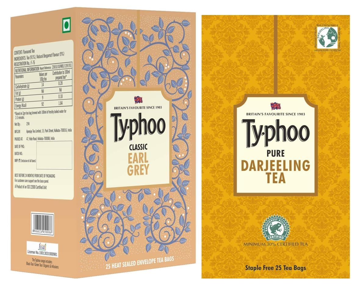 Typhoo Luxurious Flavoured Earl Grey Tea Bags (25 Tea Bags)The perfect drink to refresh your day. Enjoy the gentle flavors of bergamot in your daily brew. Best enjoyed without milk.Typhoo Darjeeling Black Tea Bags (25 Tea Bags)The perfect brew for your discerning taste. This champagne of all teas has a toasty muscatel flavor. Handpicked from the himalayan foothills they are a connoisseurâs choice.