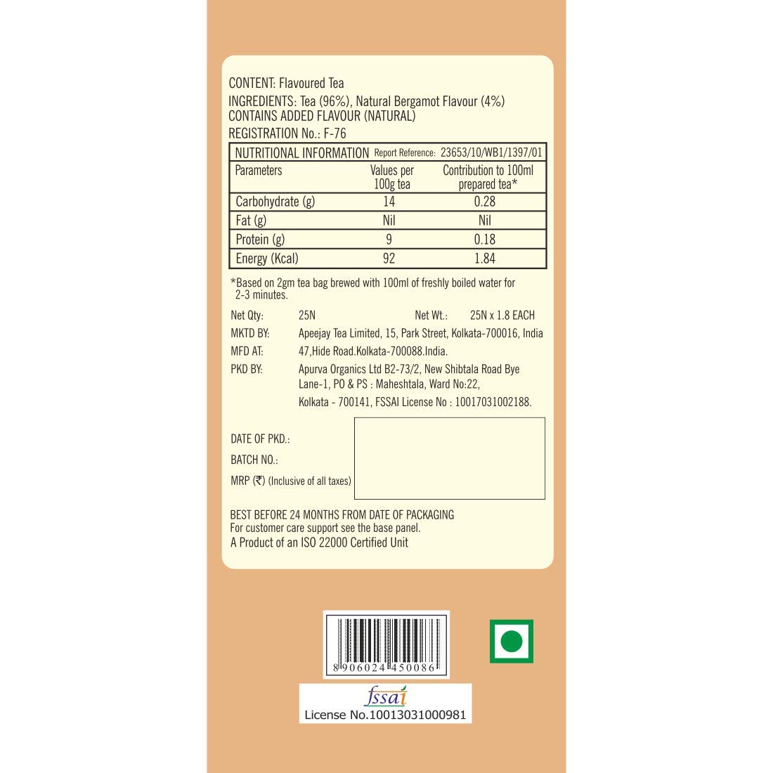 Product 1: INGREDIENTS: Enjoy your brew enriched with bergamot and Assam tea.