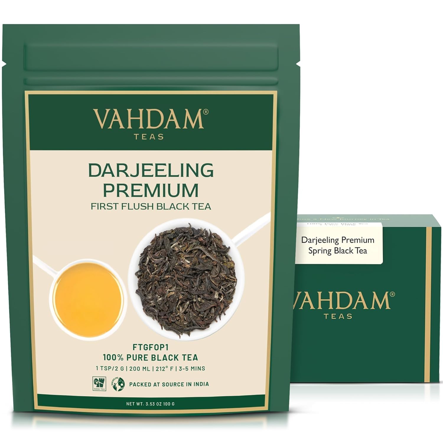 VAHDAM First Flush Darjeeling Tea - (100g) | Loose Leaf Black Tea - Flowery Aromatic & Delicious | Champagne Of Teas | Mellow & Fragrant | Direct From India | Vacuum Sealed