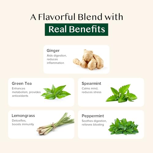 VAHDAM Ginger Mint Green Tea Bags (50 Count) Med Caffeine Non-GMO Gluten-Free Naturally High Grown Green Tea | Whole Loose Leaf Tea Bags | Resealable Ziplock Pouch