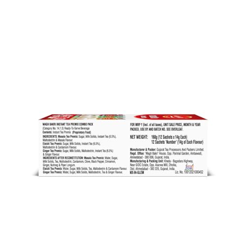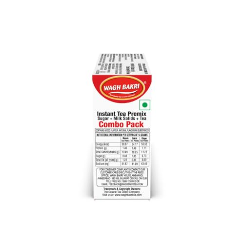 Wagh Bakri Instant Tea Premix, 4 Sachets Each of Elaichi, Ginger, Masala - Total 12 Sachets