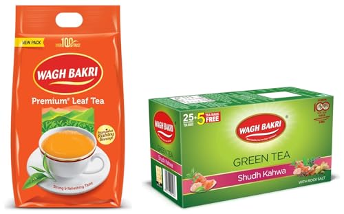 Wagh Bakri Premium Leaf Tea Pack 1kgWhy Wagh Bakri Premium Leaf Tea? At Wagh Bakri Tea Group we believe tea is a social catalyst that spreads peace and harmony bringing people together to build relationships. To make your tea moments more delightful and bonds stronger Wagh Bakri brings to you Premium Leaf Tea known for its premium quality for over 100 years. What makes it unique? Wagh Bakri Tea is renowned for its premium quality which promises strong taste stimulating aroma and rich colour. Handpicked from the best tea gardens in India and blended by tea experts this premium leaf tea ensures a delightful tea drinking experience. When to enjoy this tea? Enjoy a hot cup of premium goodness and rejuvenate your senses anytime. Storage: Store in a cool dry place.Wagh Bakri Green Tea Shudh Kahwa Tea Bag 25 Tea Bag*2.5g 62.5gWagh Bakri Tea master blenders & tasters have selected the finest green tea made from the leaves of Camellia Sinensis that have undergone minimal oxidation during processing Wagh Bakri Green Tea is naturally rich in antioxidants (flavonoids).