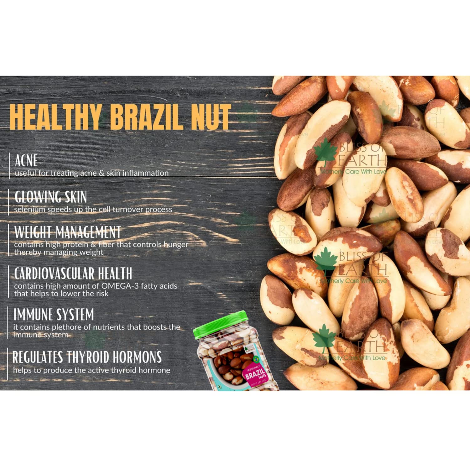 Bliss of Earth Natural White Onion Powder is dehydrated ground onion that is most important culinary ingredients in every kitchen. Its characteristics strong flavour when raw makes it great addition on salad. Its sweet flavour when cooked is a key element for meats poultry seafood and all kind of side dishes. Bliss of Earth Brazil Nuts are nutritional powerhouse providing healthy fats vitamins and minerals. They are particularly high in selenium a mineral with potent antioxidant properties. Hazelnuts can be consumed as a raw snack roasted or added to baked dishes such as cake chocolates & shakes. All in all brazil nuts are an excellent and delicious source of nutrients for a healthy diet. Direction for use: Consume raw roasted or salted. Add to your cake chocolates or shakes.