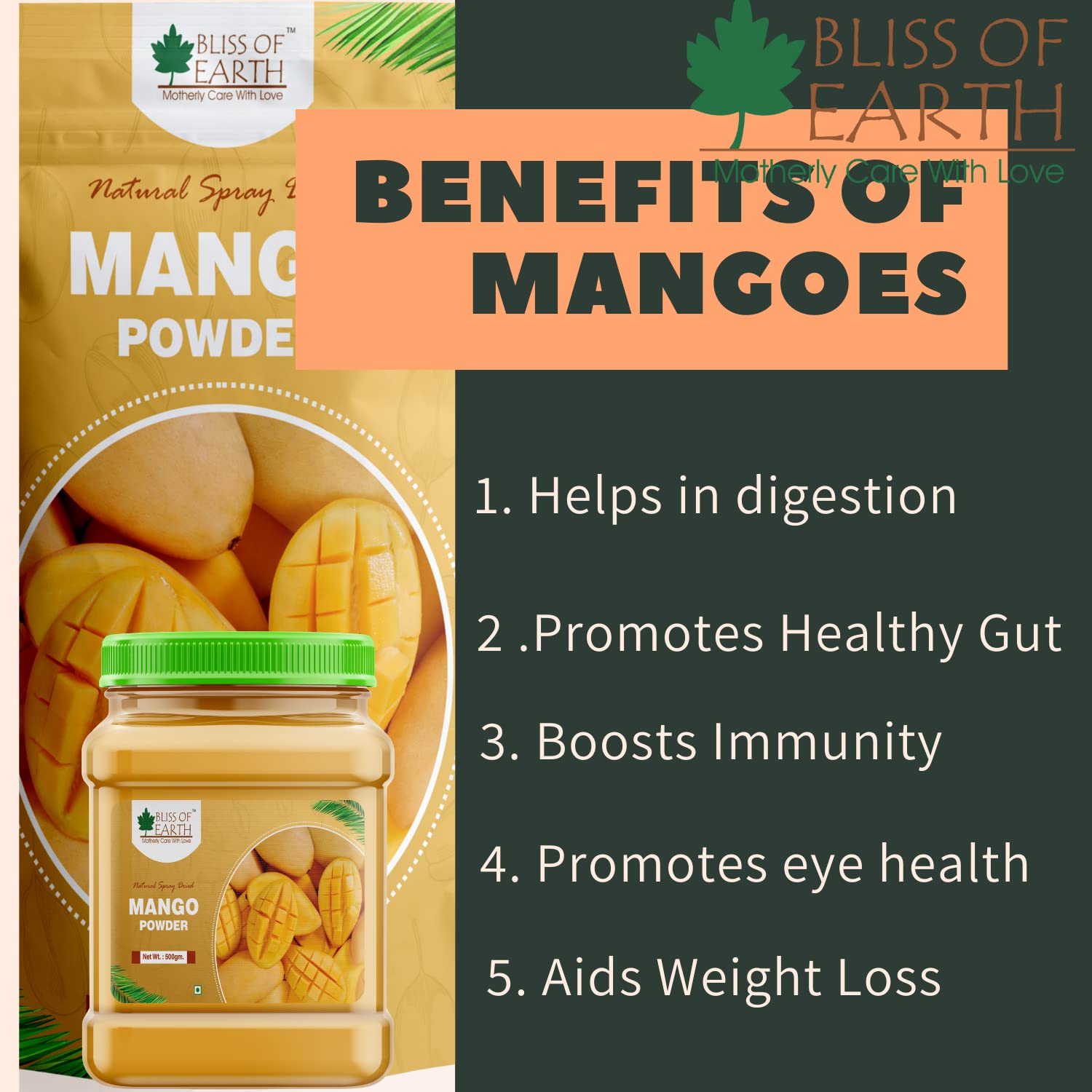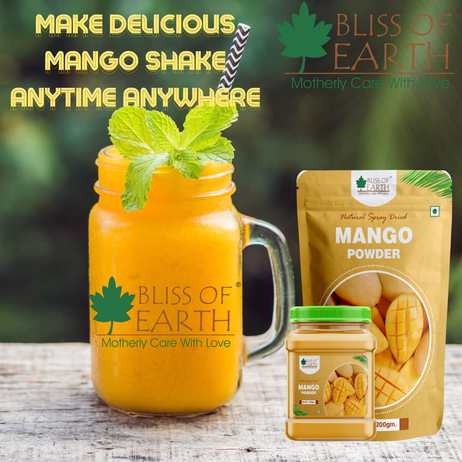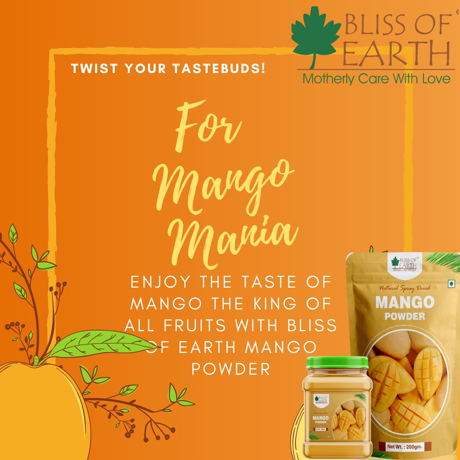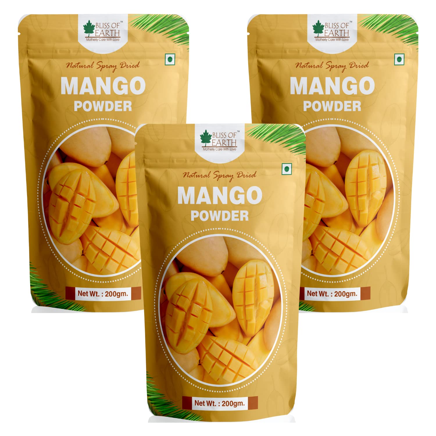 Bliss of Earth Mango Powder 200gm Natural Spray Dried king of fruits Vitamin ACK Rich (Pack of 3)