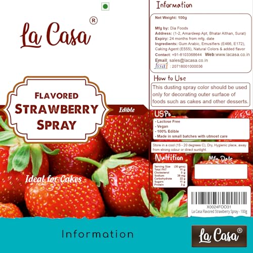 PERFECT FOR BAKING: Adding our delicious Flavored Spray Color to your batters and doughs. Use it to make pancakes cake cupcakes or cookies. It’s available in a variety of colors & Flavors. ICE CREAM TOPPING: Our gourmet flavored spray colors are perfect for ice cream and sundaes. Sprinkle them over syrups sauces whipped cream and other garnishments to add a touch of added Glitter & flavor. EASY TO USE: The premium flavored Pearlescent top makes it easy to pour or shake toppings over foods without making a mess. The perforated nozzle and wide opening makes it’s easy for kids to use too. QUALITY PRODUCTS: La Casa's premium quality baking ingredients provide the best flavor and taste. We search around the world for unique flavors to help make your baked goods taste spectacular!