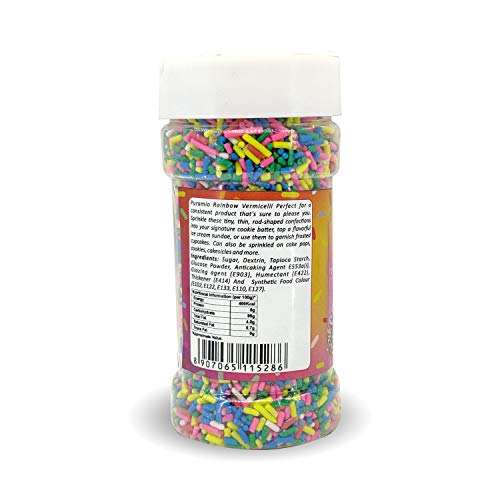 Our Vermicelli are for sure going to be an instant favourite of everyone at your next party! These contain a blend of Assorted Sprinkles Adds glamorous touch to treats This is a Vegetarian product. Add instant happiness to your yummy treats These sprinkles have a slight crunch Enhance the enjoyment of baking with the familyVermicelli is our all-time favourite toppings! Use them to add sensationally sweet shades to your cupcakes cakes cookies desserts etc.