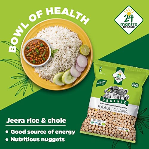 Product Description Whole legumes are not only good sources of proteins but are also a great source of dietary fiber. Legumes are the best source of proteins for vegetarians and vegans. Our 24 Mantra Organic Kabuli Chana organic is a rich source of protein and a good source of certain minerals and vitamins also. 24 Mantra Organic Kabuli Chana organic has several potential health benefits when consumed as part of a balanced diet. 24 Mantra Organic Kabuli Chana organic is rich in dietary fiber. From the Manufacturer Kabuli channa or white chick peas from 24 mantra organic are big in size and excellent to taste. This legume is very famous for its high nutritive value. It is free from unwanted and hazardous side effect of pesticides and is a totally organic product. 24 mantra organic brings the best of variety kabuli chana varieties to you. Kabuli channa is used to make the delectable chole a spicy gravy from the punjabi cuisine. In north india channa bhatura is a very famous breakfast and meal dish that is prepared on a large scale. 24 mantra organic's kabuli channa is extremely nutritious and have high protein content. All products of 24 mantra organic are certified as per indian us and european organic standards.What is Organic?Organic is a way a habit and a practice all rolled into one. It refers to a way of growing and processing food. It is also about the reliance on an ecological system that sustains itself on rich soil and proven traditional practices to grow crop and food that resists pests and diseases. Organic also means the farmers don't use toxic persistent pesticides fertilizers which are known to contaminate soil air water and the food. In fact organic farmers and farming involves practices of rotating crops deploying beneficial insects using locally honed methods adding composted manure and plant wastes to the soil.They choose solutions to the pests and disease problems that affect their crops in a way that does not damage and destroy the planet. Their wisdom is proven so are their practicesKey benefits No pesticides or harmful chemicalsBetter nutrition rich in antioxidantsBetter tasteBetter ecologySustainable -better planet for our childrenSafe foodNo water contaminationFarmers better lives10 reasons to go organic 1. Protect children and your family members from cancer causing pesticides 2. Say goodbye to chemicals in your diet 3. Get the taste of health and nutrition 4. Reduce health risks with Organic purity 5. Eat foods adhering to international standards 6. Protect the earth as organic farming is planet friendly 7. Prevent water contamination as there are no chemicals pollutants in organic farming 8. Gain from the diversity of crops which is becoming a thing of the past 9. Help small farmers and eliminate middlemen to create sustainable livelihoods 10. Stay in harmony with natureOur StandardsUS EU and India certified us. Organic certification is a process that helps producers of organic food and other organic agricultural products to get their products certified through internationally accredited certification bodies such as Control Union Onecert IMO Indocert etc. Organic certification is intended to assure quality and prevent fraud. Certified organic label is a product assurance for consumers worldwide.The standards are laid down and administered in India by APEDA. The standard is called the NPOP National Programme for Organic Production. Similarly the US standard is called USDA NOP (National Organic Programme) standards and the European Union standards are specified by regulation EC 834/2007Our FarmersThey come with different sizes of land. They belong to different States of India. They enjoy a reputation of being empathetic to nature and the planet. They care about growing healthy pure food. Organic farming begins with good well meaning farmers. They are at the core of our journey. For us it means partnering with them in a way that benefits them and sustains their lands and longevity. We have 20000 farmers working on 30 farming projects spread over 100000 acres in 15 States in India.