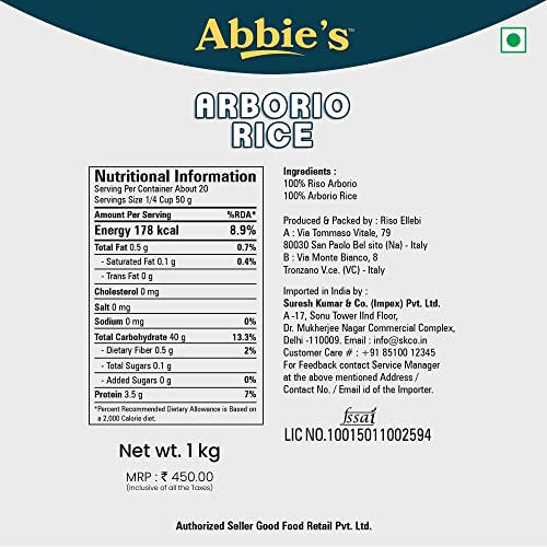 Abbie's Italian Arborio Rice, Produced In Italy,1 kg Vacuum Packed, Perfect Rice For Risotto