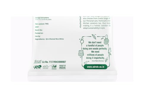 Adrish Zerowaste Organic Ajara Ghansal White Rice (1kg) - Handpounded | Traditionally Milled | Gluten Free Ghansal Rice Loose | Suitable for Daily Cooking | Organic Aged Rice