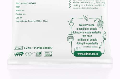 Adrish Zerowaste Organic Barnyard Millet Flour - (500gm) - Unpolished Millet Flour | Fiber & Iron Rich | Millet Dosa Flour