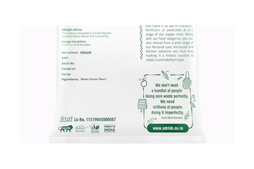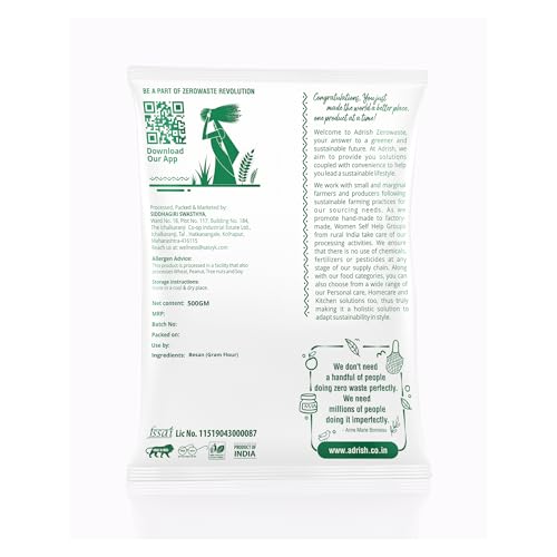 Adrish Chana flour is organically cultivated right from sowing seed to harvesting of crops. Seeds used are of âDesi Indian variety and are sprayed with jeevamrut dashaparni ark and various traditional organic sprays to avoid pests. Harvested gram is then separated from its husk using ancient winnowing methods of separation. After they are sun dried they are grinded in a stone grinder at a very low RMP (Rotations per minute). Due to this traditional process no heat is generated and all the nutrient contents are intact.