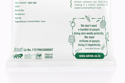 Adrish Zerowaste Organic Foxtail Millet Flour - (500gm) - Unpolished Millet Flour | Fiber & Iron Rich | Millet Dosa Flour