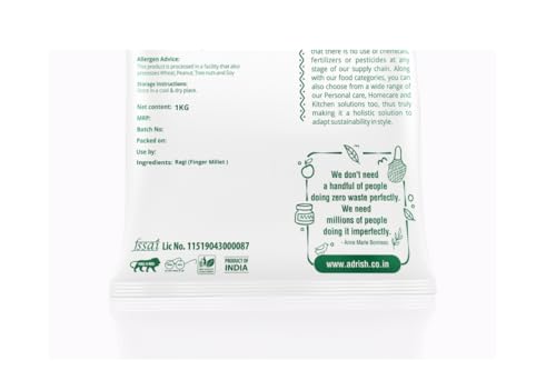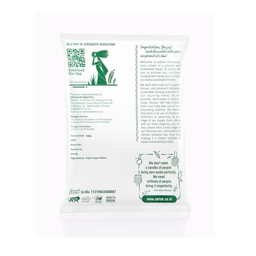 Adrish Zerowaste Organic Ragi Whole (1kg) - Unpolished Finger Millet | Gluten Free Nachni | Whole Grain Ragi | High Plant Protein & Fiber