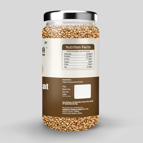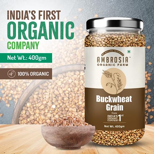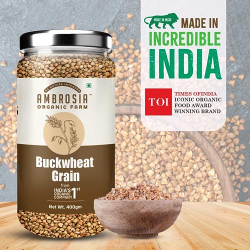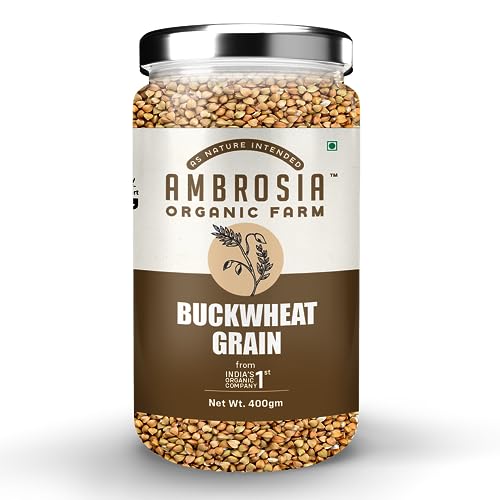 HomeGroceryCookingOrganic Flours, Rice & PulsesAmbrosia Organic Farm Gluten Free Buckwheat Grains - The Perfect Choice For Healthy & Wholesome Meals|Plant Based High Protein|Grain To Make A Flour/Atta|Make Your Own Bread (400 Gm)