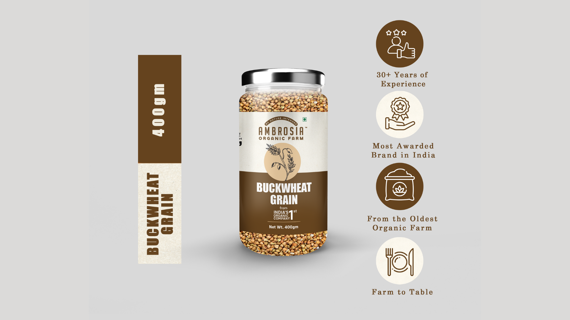 Ambrosia Organic Farm Gluten Free Buckwheat Grains - The Perfect Choice For Healthy & Wholesome Meals|Plant Based High Protein|Grain To Make A Flour/Atta|Make Your Own Bread (400 Gm)