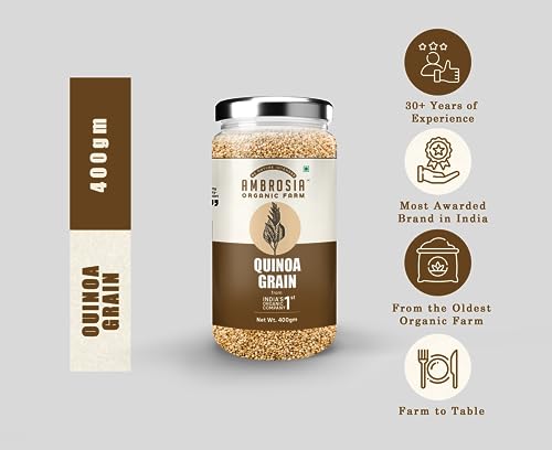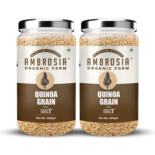 Ambrosia Organic Farm Gluten Free Quinoa Grain, High in Protein and fibre, Healthy Breakfast, Cooks like Rice - 400g Each (Pack of 2)