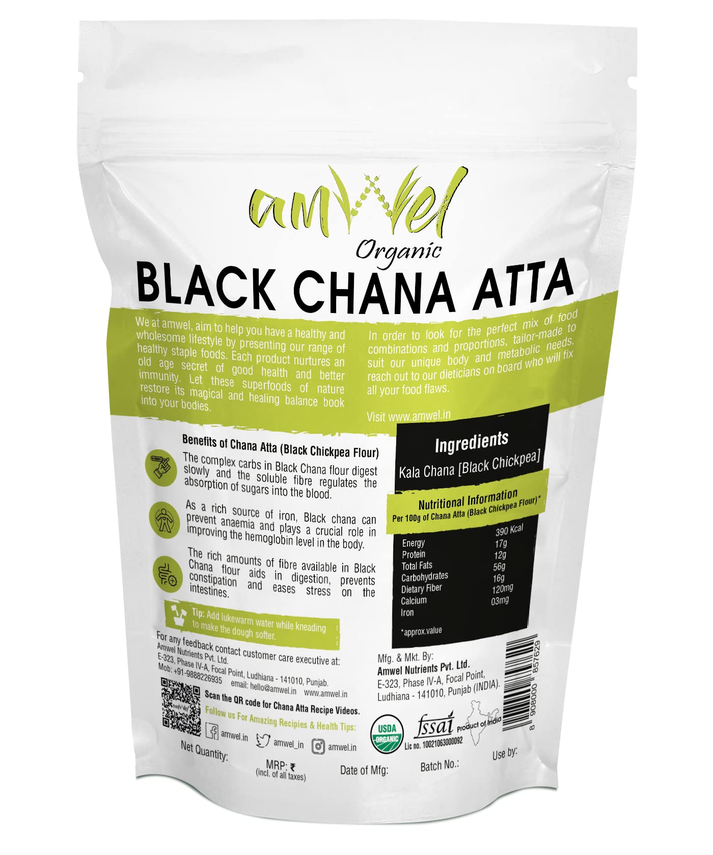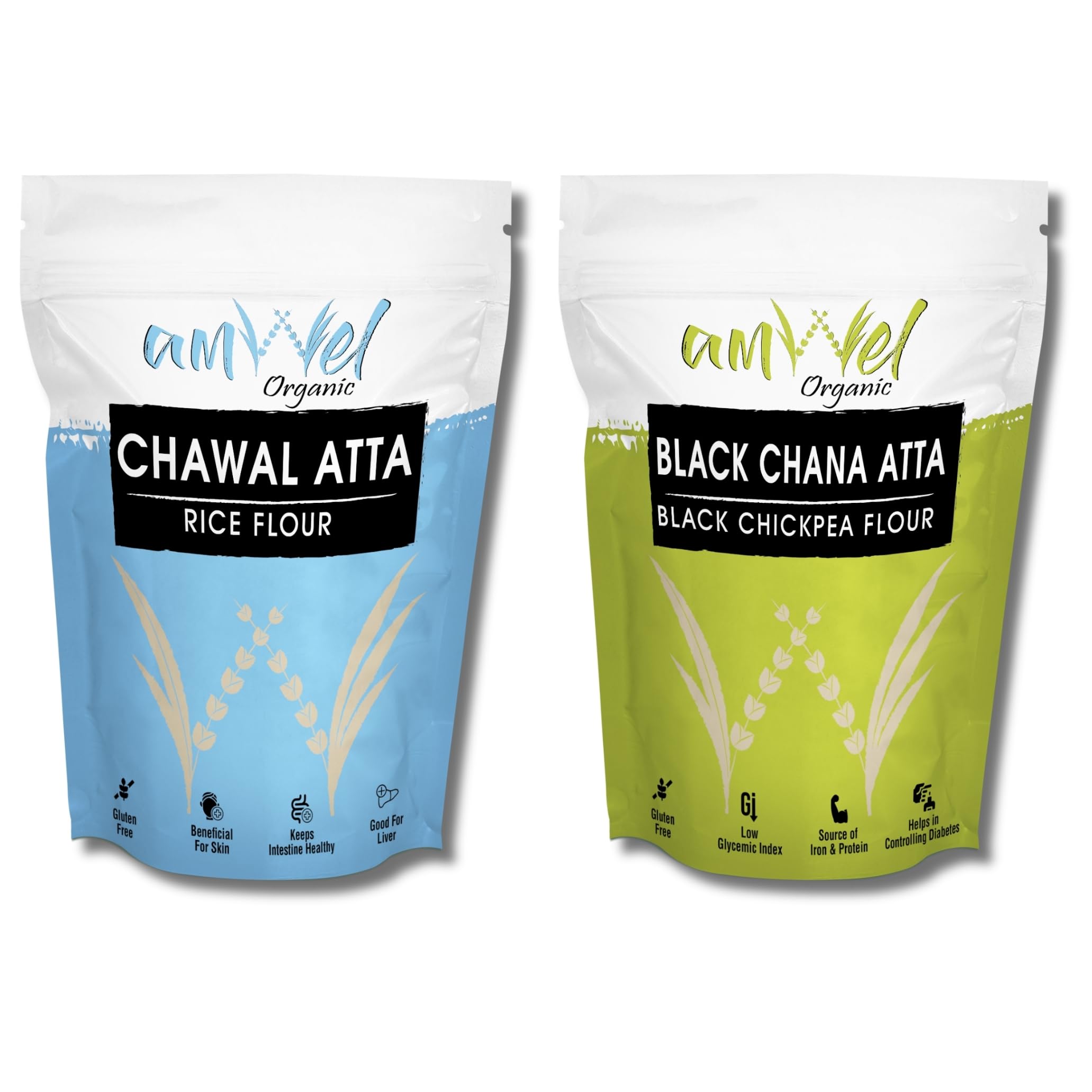 Amwel Combo of Chawal Atta 450g + Black Chana atta 450g | Rice Flour + Chickpea Flour | Gluten Free Diabetic Friendly Low GI Atta for Chapati | Weight Management | For Good Health | 900g | Vacuun Packed