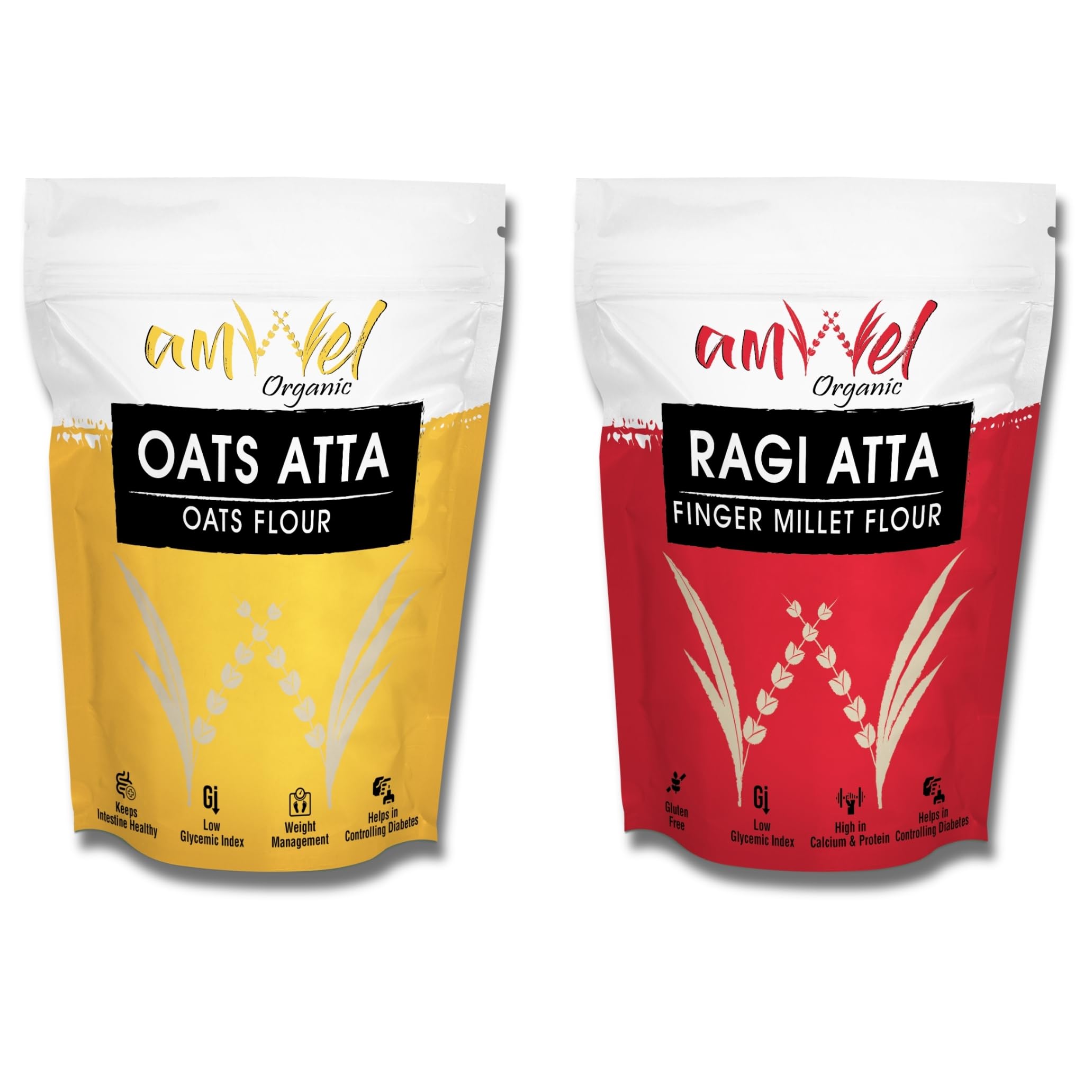 Amwel Combo of Oats Atta 450g + Ragi Atta 450g | Oats Flour + Finger Millet Flour | Diabetic Friendly Low GI Atta For Chapati | Rich In Calcium | Weight Management | For Good Health | 900g | Vacuum Packed
