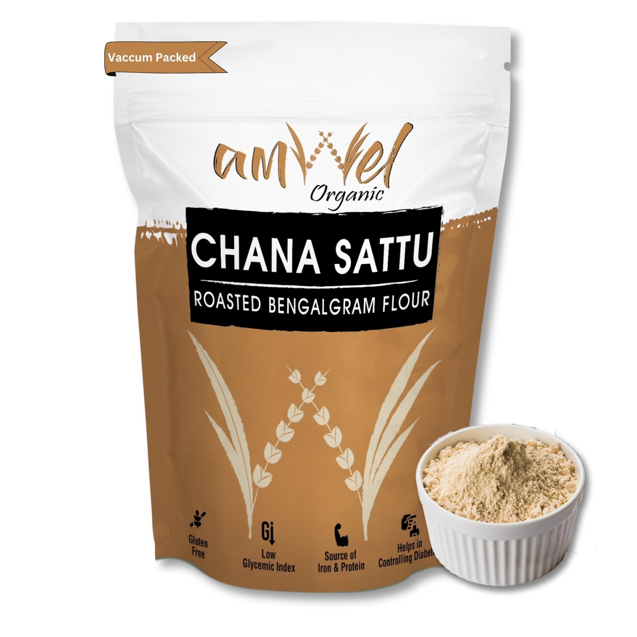 Looking for a healthy yet delicious diet without compromising your taste buds? Yes! Thats possible we are here for your presenting a wide variety of healthy gluten-free flours millets seeds & pasta which you can consume in your daily life and that is organic and free from any kind of preservatives ensuring all the vitamins and micronutrients are well preserved. And Yes these are much more delicious than junk food and allow you a guilt-free diet! Chana Sattu is a flour made from roasted Bengal gram . Itâs considered a superfood due to its high nutritional value and versatility. Chana Sattu is traditionally consumed as a refreshing drink or mixed into foods to boost protein intake. KEEP YOUR SUGAR LEVEL UNDER CONTROL : The Chana Sattu has low GI value which means it releases sugar in body slowly & steadily preventing rapid rise in blood sugar level benefiting diabetic people ADOPT GLUTEN FREE LIFESTYLE : Chana Sattu is gluten free in nature and hence can be consumed by those who are allergic to gluten or are adopting gluten-free lifestyle. POWERHOUSE OF IRON & PROTEIN : Chana Satuu is an excellent source of Iron & Protein and helps build immunity. Roasted Black Chana is the best source of plant protein. KEEP YOUR INTESTINE HEALTHTY : Sattu Drink is rich in Dietary fiber taking good care of your gut health. Black Chana helps in keeping your digestive system intact. MAKE DELICIOUSLY HEALTHY RECIPIES : Make recipes that make your taste buds tempting without compromising your health. Make black sattu Cookies chana sattu Dosa chana satuu Laddo and much more DIRECT FROM MANUFACTURER : We ship freshly manufactured traditionally stone grounded Roasted Bengal gram making sure that all the essential nutrients remain intact. 100% ORGANIC : We use organic Roasted Black Chana whole grain to manufacture the best quality sattu Just Go Ahead and start a guilt-free diet now.