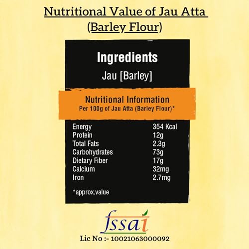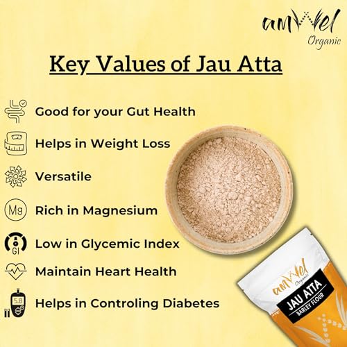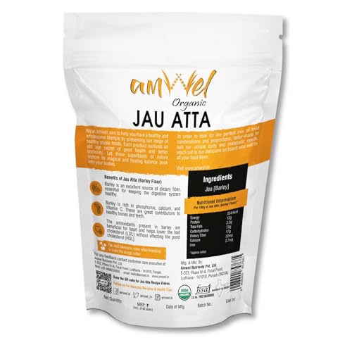 HomeGroceryCookingOrganic Flours, Rice & PulsesAmwel Organic Jau Atta - Barley Flour Jaun ka atta | 450g x 4 pc | Rich in Dietary Fiber Good for Digestion Weight Loss Gut health | Natural & Vegan | Diabetic friendly Low GI | Without Wheat | Vacuum Packed