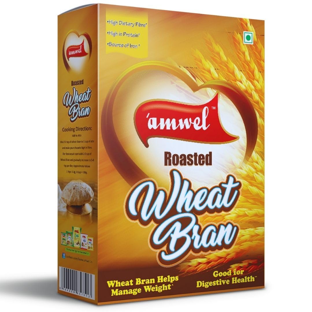 Amwel Roasted Wheat Bran | Atta Choker | High Fiber Dietary Food | Use in Salad Shakes Curry Chapati Cereals | Good for Gut Health and Weight Management | Diabetic Friendly 500g Box