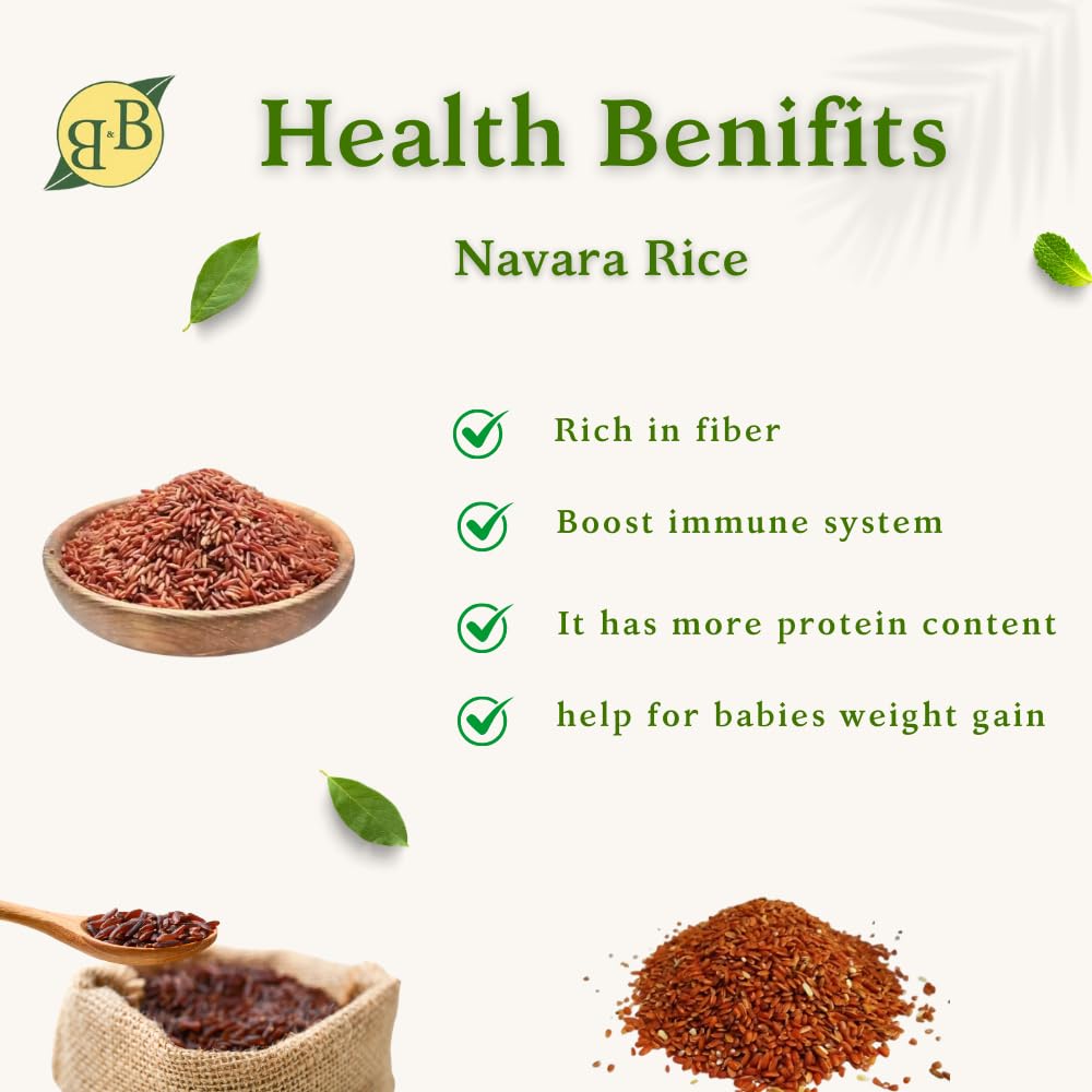 CULTIVATION: Navara rice is cultivated by involving traditional and sustainable practices in Kerala India. Planted during the monsoon season farmers prioritize organic methods maintaining soil health. The heirloom variety thrives in well-drained soils