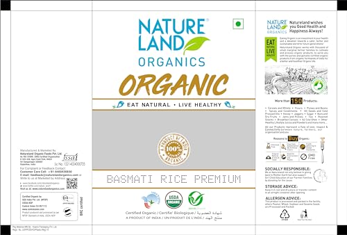 Nature land organic basmati rice is high calorific value: those looking for high energy food in their regular diet should prefer basmati over other varieties of rice processed cleaned and packed with great care to make sure all impurities are removed effectively and packed in such a way that the nutritional value of the rice and the aromatic fragrance is maintained well. This long grained rice is an exceptional choice.