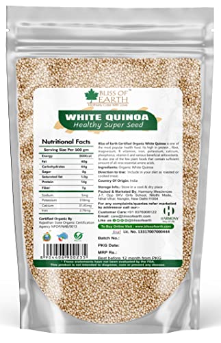 Bliss of Earth Certified Organic White Quinoa is one of the most popular health food. Its high in protein fiber magnesium B vitamins iron potassium calcium phosphorus vitamin E and various beneficial antioxidants. Its also one of the few plant foods that contain sufficient amount of all nine essential amino acids.