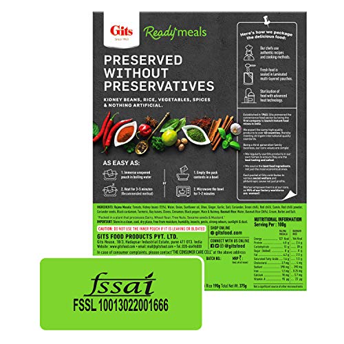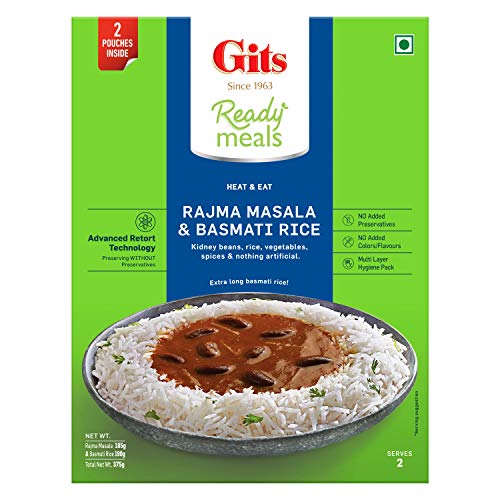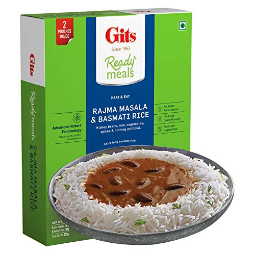 Gits Ready to Eat Basmati Rice & Rajma Masala Combo Meal, Pure Veg, Heat and Eat, 375g