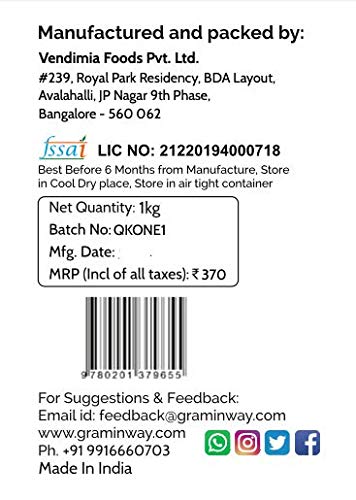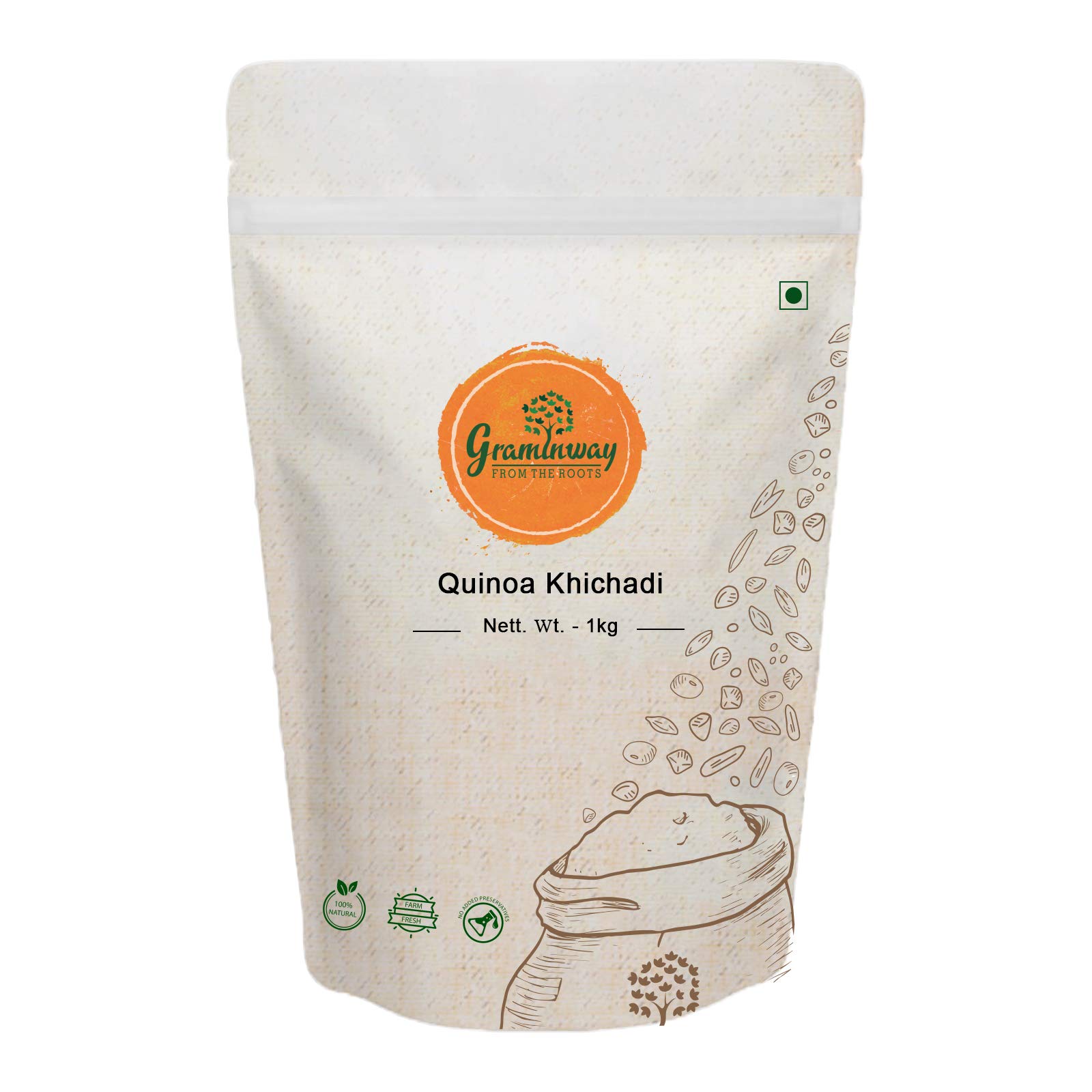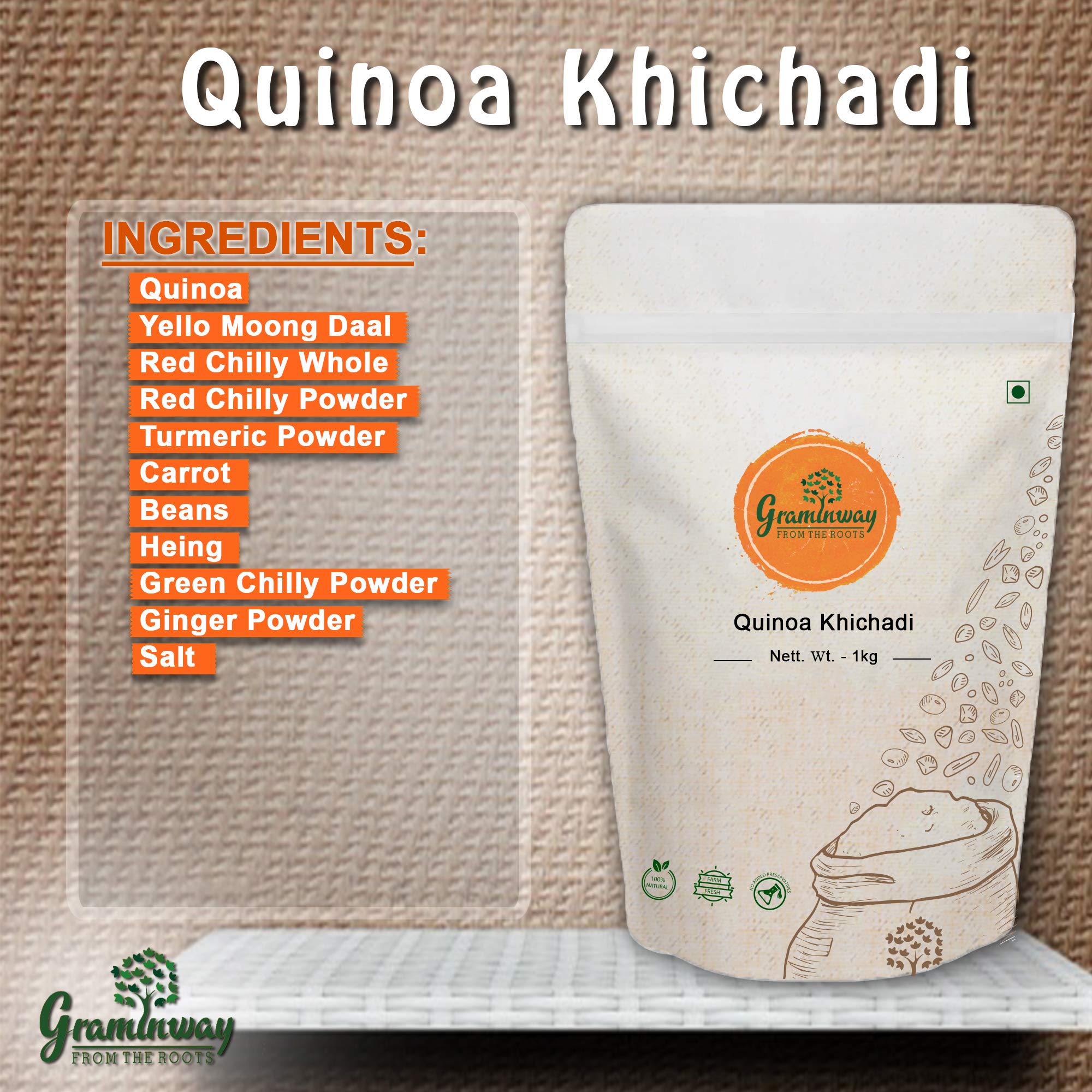 Quinoa has been in use for more than 5000 years among the Incas in South America who considered it the mother of grains. Quinoa has made a comeback in modern times as a superfood and ancient grain brimming with protein fibre amino acids and vital minerals. It also falls quite low on the glycemic index making it perfect for people with diabetes. Graminways Quinoa Khichdi mix contains completely natural ingredients that are free of preservatives. For a power-packed meal we add yellow moong dal beans and carrots for that additional protein boost. We then add in some green chilli ginger and cumin to make it all come together in a flavoursome bowl. Isnt it tempting? Cooking guidelines Take one cup of Graminways Quinoa Khichdi mix. Add 3 cups of water and pressure cook for mins Add a tempering of ghee with cumin and asafoetida for enhanced flavours. Pair with Graminways Aam Ka Achar or Nimbu Ka Achar!