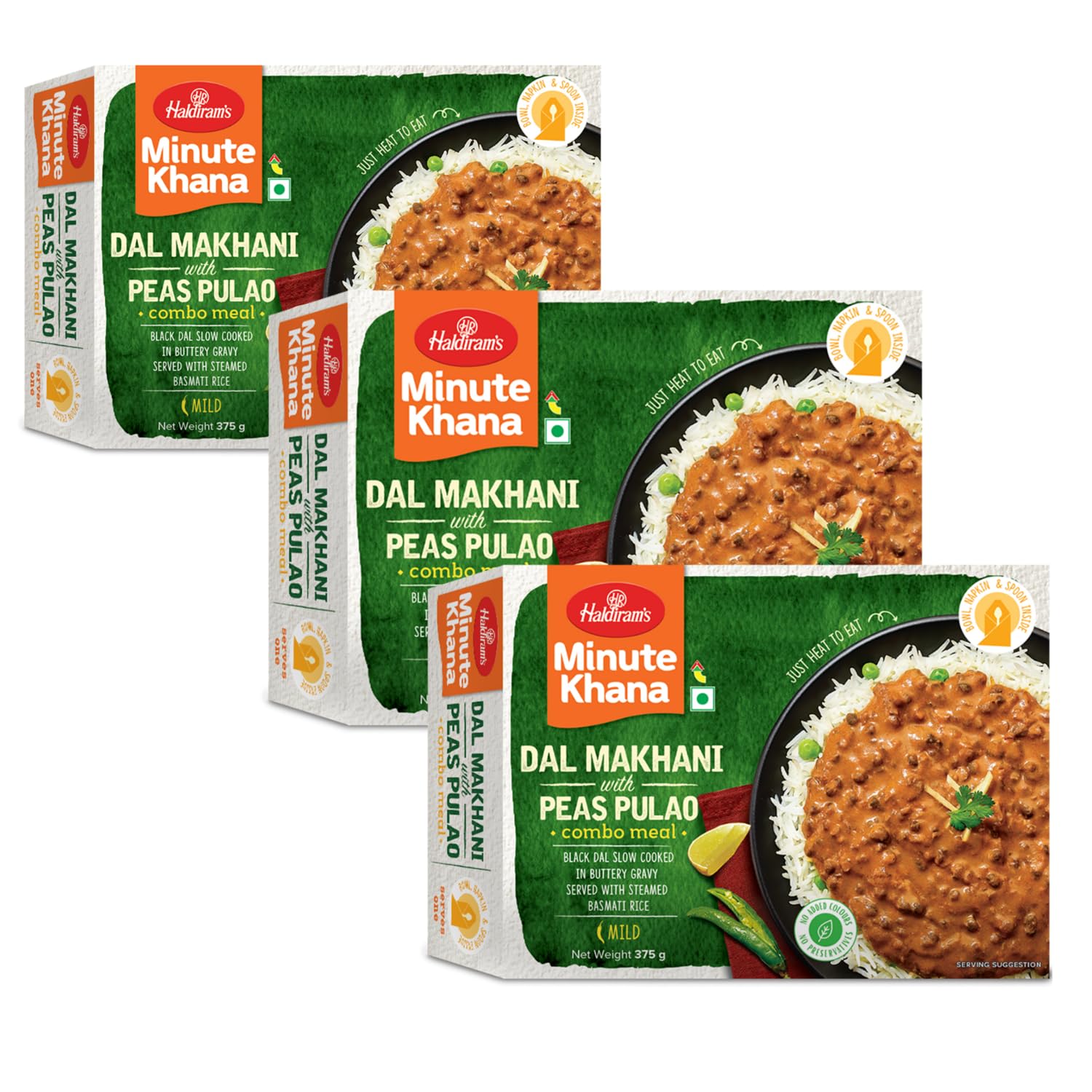 Haldiram Dal Makhni and Peas Pulao is a delicious and convenient readytoeat meal offered by Haldiram a renowned Indian food brand. It combines two classic Indian dishes Dal Makhni and Peas Pulao in a single package providing a wholesome and flavorful meal option. Dal Makhni is a popular Punjabi lentil dish made with black lentils (urad dal) and kidney beans (rajma) cooked together with a blend of aromatic spices butter and cream. It is known for its rich and creamy texture along with its hearty and comforting flavors. The dal is slowcooked to perfection allowing the flavors to meld together resulting in a dish that is both satisfying and indulgent. Peas Pulao on the other hand is a fragrant rice dish made with basmati rice peas and spices. The rice is cooked with a tempering of whole spices like cumin seeds bay leaves and cloves along with the addition of peas which add sweetness and color to the dish. The result is a flavorful and aromatic rice dish that complements the creamy dal makhni.
