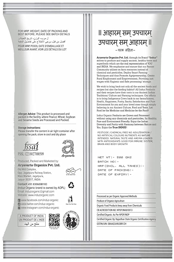 Induz Organic Sona Masoori Rice - 500 GMS is absolutely Natural, Non GMO, and Certified Organic Rice. This Induz Organic Sona Masoori Rice - 500 GMS has been cultivated without using any harmful chemic, or s in certified Organic Farmlands. This Organic Rice has gone through less processing; so it contains all the nutrients inside.INDUZ ORGANIC's mission is to help people live a healthier, wholesome life by providing them with a variety of 100% certified, authentic organic foods. We value honesty, integrity and continual self-improvement. We are committed to a sustainable environment, zero-itive foods and complete customer-satisfaction. The brand INDUZ ORGANIC is based on the principles of health, ecology, fairness and care.