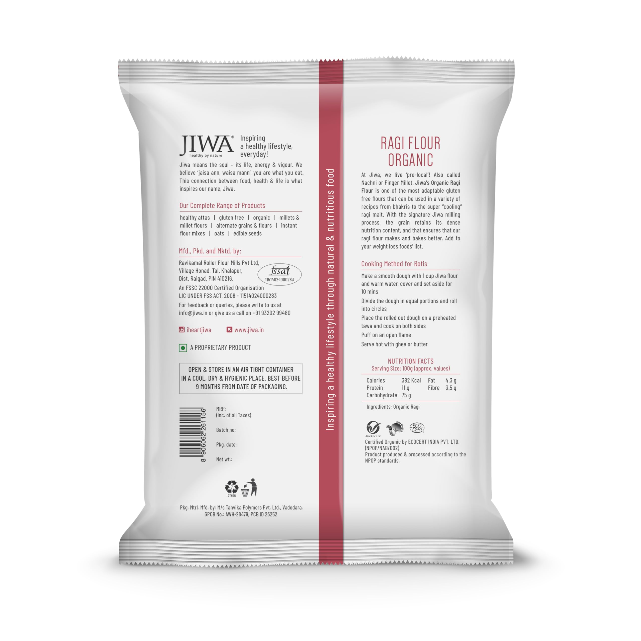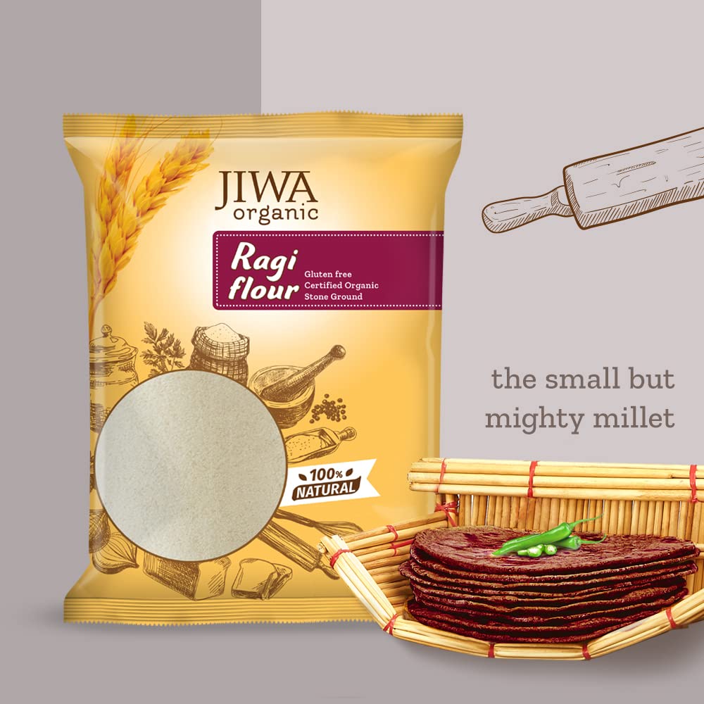 At Jiwa we live ‘pro-local’ and when it is something as versatile as Ragi the benefits get praised to the skies! Also called Nachni or Finger Millet Jiwa’s Organic Ragi Atta made with sprouted ragi is one of the most adaptable gluten free flours and can be used in a variety of recipes from bhakris to the super “cooling” ragi malt. With the signature Jiwa milling process the grain retains its dense nutrition content and that ensures that our ragi atta makes and bakes better. Add it in your weight loss foods’ list to make satiating meals and let its abundant antioxidants take care of your wellbeing too. Best before 6 months from date of manufacturing fresher the better! Conventionally stored in tin boxes away from moisture and heat. Jiwa products are an innovative value-added solution in the packaged food space. With us make the shift to health with ease. Most food products today contain artificial chemicals flavours colours & enhancers. But not Jiwa. Everything about Jiwa is 100% Natural. We strive to inspire a healthy lifestyle through gluten free organic & nutritious superfoods. Explore our range of healthy gluten free millet flours like Jowari flour Amaranth flour Bajri flour Quinoa Flour and Ragi Flour on our brand store. Certified Organic: Jiwa's Ragi Atta is Certified Organic by Ecocert India. This product is produced processed & packed according to NPOP standards. All Jiwa products are processed in an ISO 22000 certified plant.