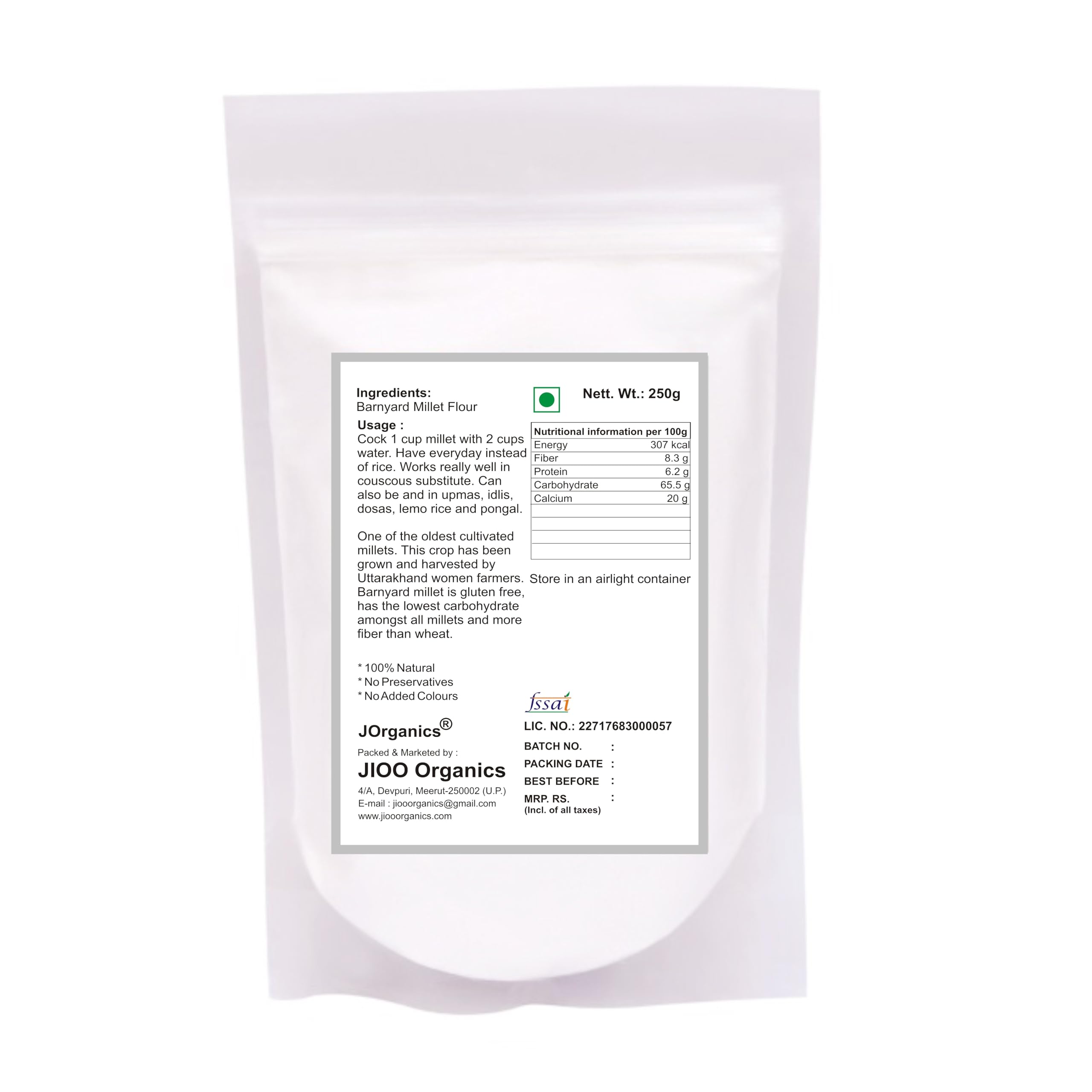 JOrganics Barnyard Millet Flour (also known as Samak ke Chawal ka Atta) is a nutritious gluten-free flour made from unpolished barnyard millet. Traditionally consumed during Indian fasting periods like Navratri Ekadashi Shivratri and other upvas it is a light healthy and easy-to-digest option for daily and festive meals. This flour is rich in fiber protein iron and essential minerals making it an excellent choice for people seeking clean and natural dietary options. It is particularly helpful for those following a gluten-free or diabetic-friendly lifestyle. Whether you're preparing rotis dosas pancakes or thalipeeth this flour delivers authentic taste with high nutrition. Free from additives or preservatives this is a wholesome and versatile flour that can be enjoyed by all age groups. Our flour is freshly milled from carefully sourced unpolished millet retaining the natural nutrients and taste. With safe and hygienic packaging it is perfect for health-conscious individuals and families looking to incorporate traditional Indian grains into their diet.