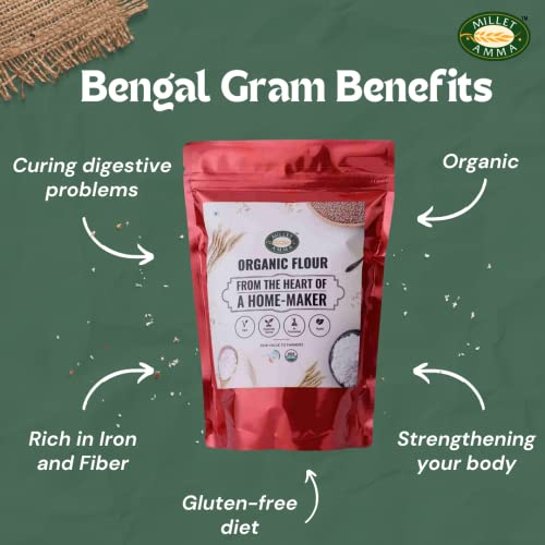 Millet Amma Organic Bengal Gram Flour | 1 kg (500g x 2 Packs) | 100% Vegan & Gluten Free | Sanaga Pindi, Chana Atta | No Added Preservatives | Suitable for Multiple Recipes ( Bhaji , Dhokla and More ) | Rich in Iron & Fiber