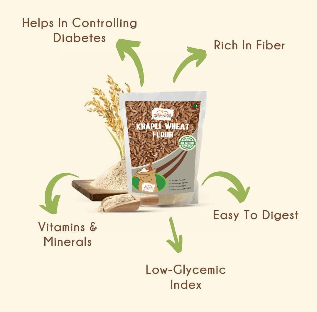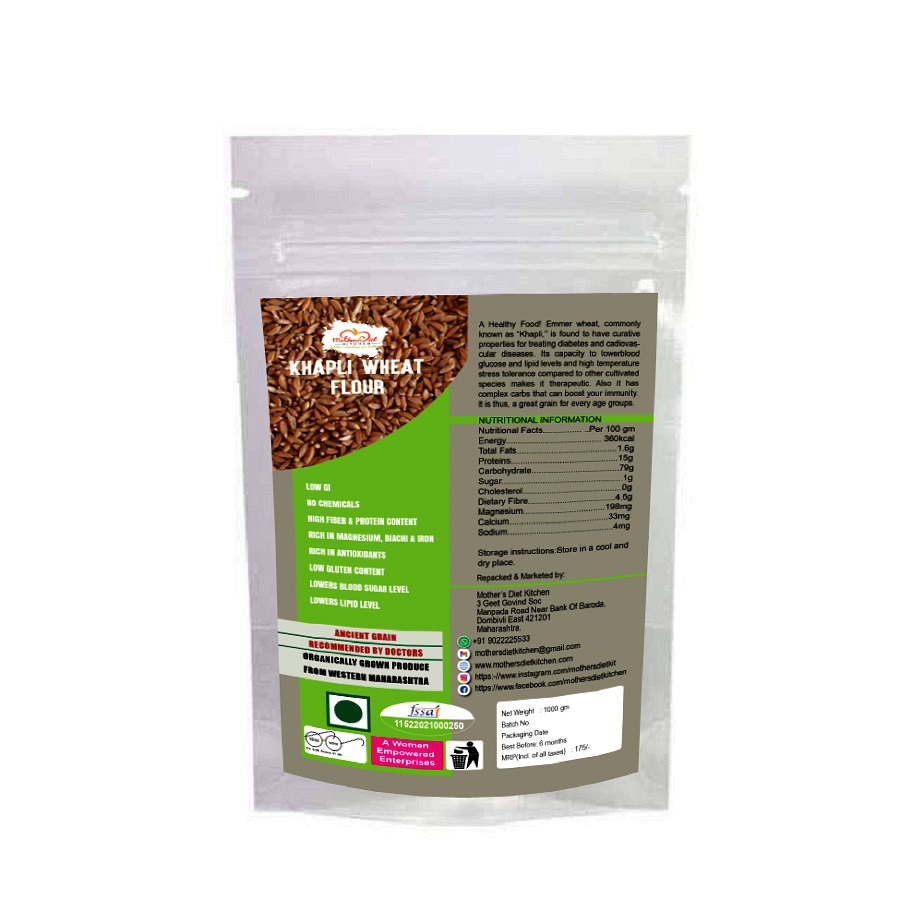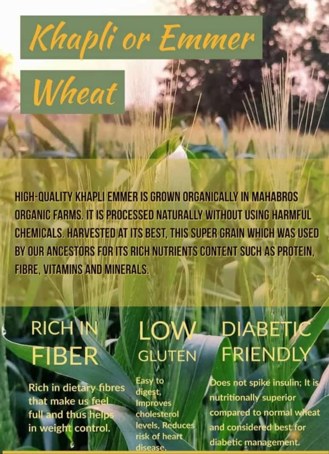 Khapli Wheat Flour is made from an heirloom variety of grain that has not been modified. This makes the atta nutritionally superior with higher protein and fiber content.Our khapli wheat atta has a taste and texture comparable to regular wheat flour, thereby making it easy to work with. Rotis made using emmer wheat flour is extremely soft, fluffy, and nutritious. Unlike regular flour, nutrients from emmer wheat whole flour get slowly and efficiently absorbed by the body.
