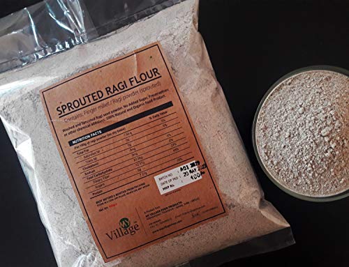 My Village Sprouted Ragi Flour is 100% Natural and Organic food product. Contains washed and sprouted Ragi flour - nothing else. Ragi is a finger millet which is high in protein and minerals in comparison to all other cereals and millets. Also a source of protein it is a perfect food for babies vegetarians Bodybuilders Aged etc. Finger millets contain important amino acids—isoleucine leucine methionine and phenyl alanine which are not present in other starchy meals. It has the highest amount of calcium and potassium. Ragi is a great source of iron making it beneficial for individuals with low hemoglobin levels. It is good for the stomach and for good digestion.  We sorted and washed quality ragi grains. Allow wet ragi to 2-3 days. So the sprouted grains spread out in the sunlight for 5 to 8 hours to dry. It is then powdered. Millets also contain B vitamins especially niacin B6 and folic acid. Some of the health benefits of ragi are attributed to its polyphenol and dietary fibre contents. Ragi possesses anti-diabetic and antioxidant and antimicrobial properties; it protects against tumors and atherosclerosis. Low in fat and gluten-free ragi is easy to digest. It is therefore given as the first food to babies in the form of ragi porridge.