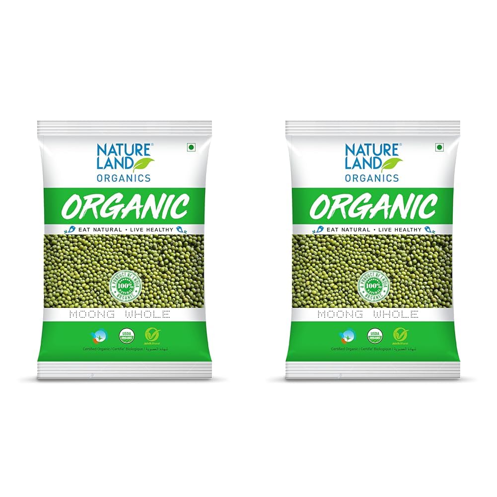 Natureland Organics Moong Sabut/Whole Daal 1 Kg - Organic Healthy Pulses (Pack of 2)
