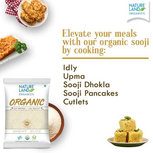 Wheat sooji or semolina has low glycemic index and that makes it a recommended food for diabetics. Natureland Organic foods suji is real cream of wheat soft suji made from premium grade of selected wheat grains by processing in a way so that only the core of wheat is pounded to make rawa/suji. This suji is packed with vital nutrients fiber and manganese and has unparallel taste and flavor. Maximum Shelf Life: 6 Months